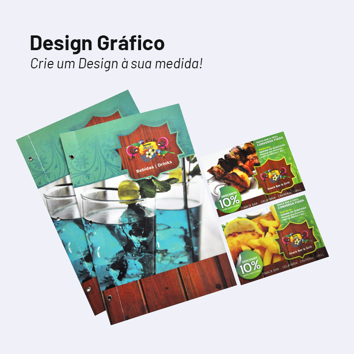 A sua imagem coorporativa, desde Cartões de visita, Flyers, Envelopes, Menus, Encadernações, Autocolantes, Bilhetes, Cartazes e muito mais…